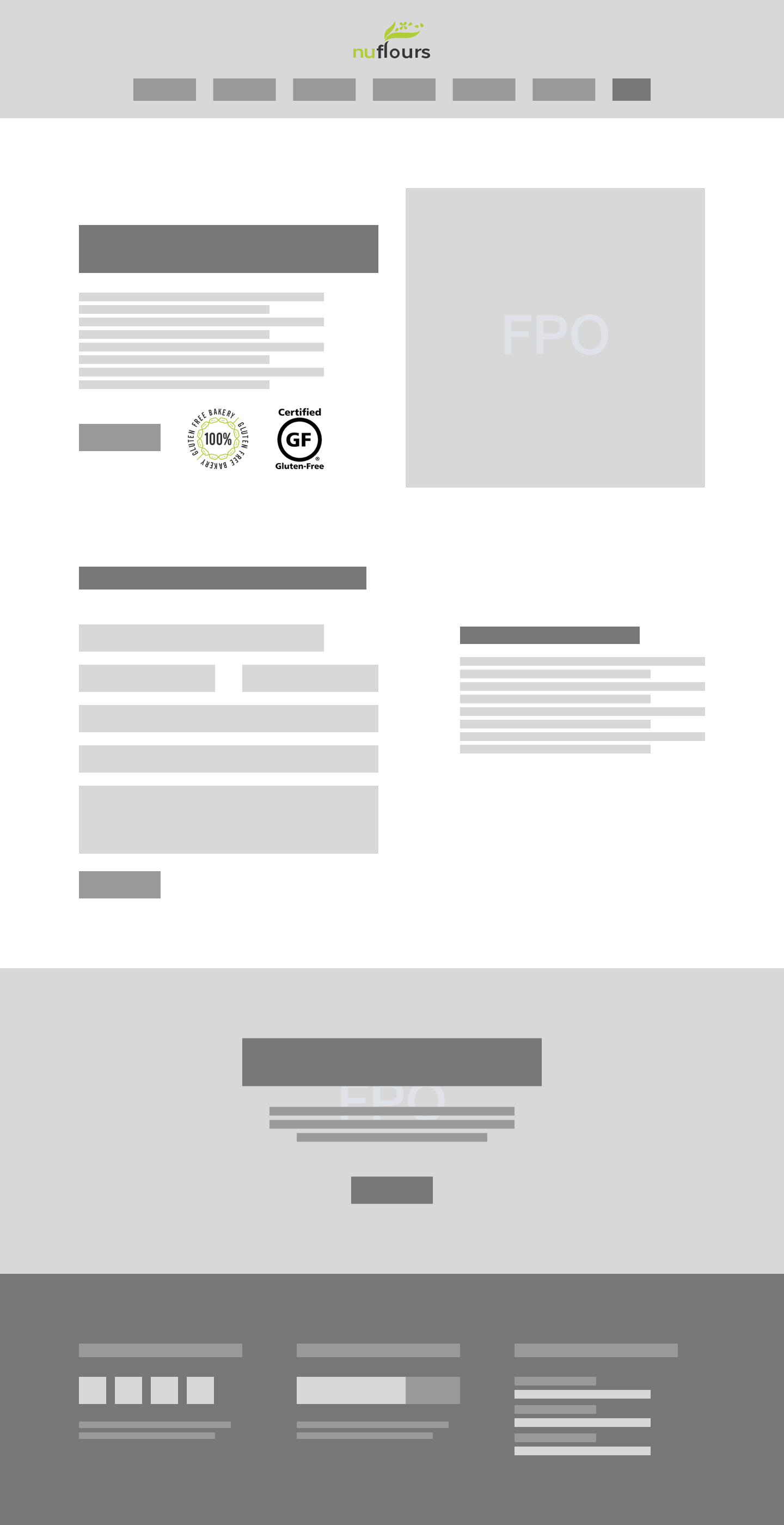Located in the Downtown Seattle area, Nuflours specializes in producing the best gluten-free baked goods in the area. For this project, the client requested a site redesign, along with the goal of more effectively presenting their wholesale options. I conducted the entirety of the design, front-end development, and integration with their existing Shopify storefront.
